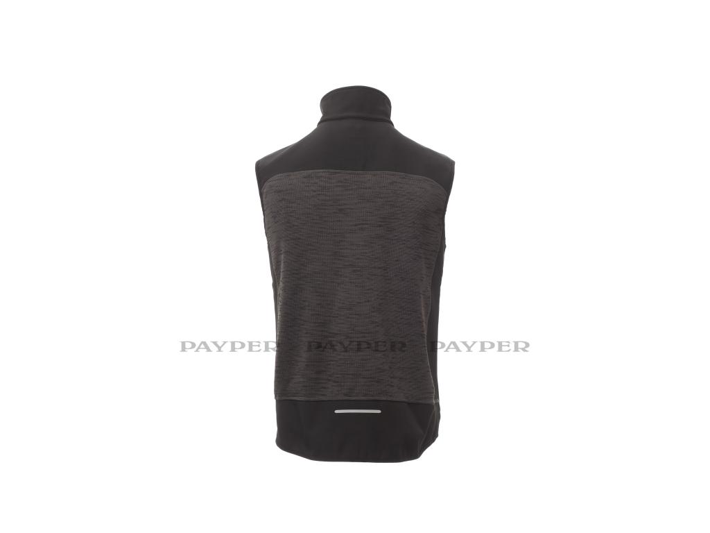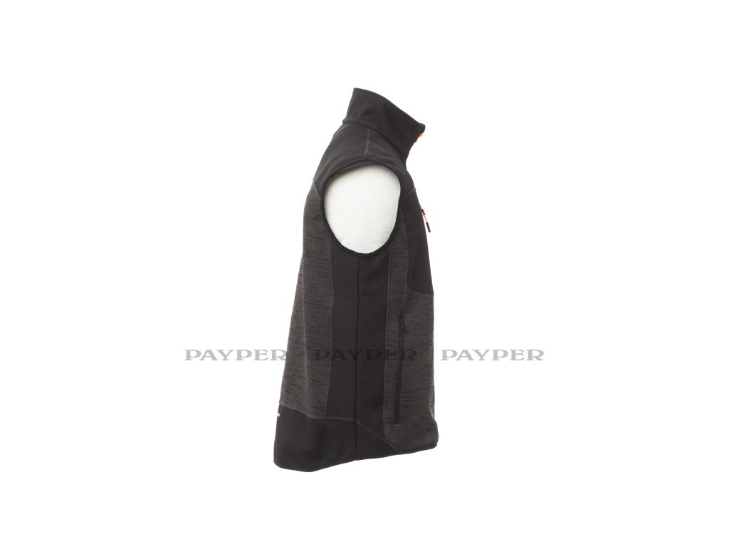 Vyriška patogi liemenė, užtrauktukas su pusiau automatinio fiksavimo metaliniu slankikliu ir tinkinta rankenėle. Plonas kraštas rankovėse ir ties liemeniu, dvi šoninės kišenės su užtrauktuku, viena kišenė ant krūtinės. Megzta apdaila su juodais „Soft-shell“ įdėklais.